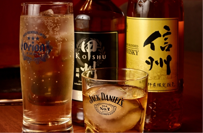 山崎 1,500円 知多 1,000円 信州 900円 甲州 900円 ジャックダニエルズ 800円 ※100円でハイボールに出来ます